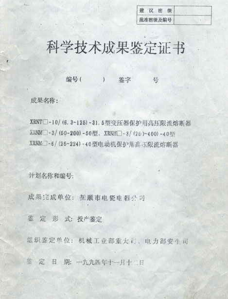 撫順電瓷廠電瓷電器公司是原機械工業部定點生產高壓隔離開關、高壓熔斷器、絕緣子、避雷器的骨干企業之一。生產歷史悠久,技術力量雄厚,產品質量可靠,產品遍及全國,遠銷國處。具備高壓隔離開關、高壓熔斷器的設計、開發及批量生產的能力。擁有英國BRUSH公司具有國際先進水平的高壓熔斷器制造技術和生產線關鍵設備,完備的檢測儀器。能夠批量生產符合國家和國際標準的3.6kv-40.5kv各種規格的戶內外高壓隔離開關、高壓限流熔斷器系列產品。產品在國家高壓電器質量監督檢測中心通過全部型式并取得了兩部鑒定和型號證書,是國家經貿委城農網改造的推薦產品,通過了ISO9002國際質量體系認證,曾榮獲機械部科技進步二等獎和地方優秀新產品獎。